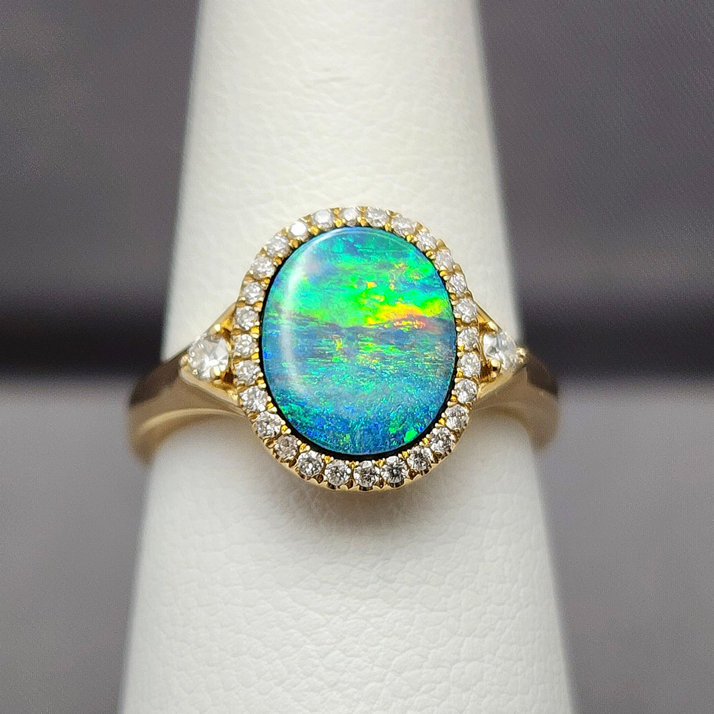 Ladies Australian Black Opal and Diamond Ring